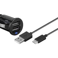 Biloplader med 2x USB – Goobay – 2,1 A, inkl. USB?C kabel, sort