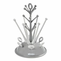 Hold styr på sutteflasker og tilbehør med den smarte flasketørrer fra Béaba. Den grå dræner er designet til at tørre babys flasker og smådele overskueligt på køkkenbordet, så alt får luft og plads. Den dekorative, træformede opbygning gør det nemt at placere flasker, sutter, låg og ringe separat.