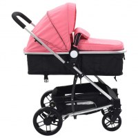 2-i-1 klapvogn/barnevogn aluminium pink og sort