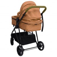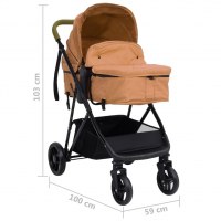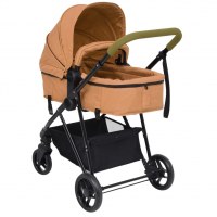 2-i-1 klapvogn/barnevogn stål gråbrun og sort