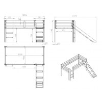 Konstruktionen er lavet af skandinavisk fyrretræ og leveres med lamelbund. Stigen og rutsjebanen kan monteres både til venstre og højre, så sengen nemt tilpasses rummet. Hele sengen er omgivet af beskyttende sengeheste for ro i maven ved sengetid. Tekstilforhænget skaber ekstra opbevaringsplads eller en lille legezone under sengen og kan kombineres med flere forskellige tekstilsæt.