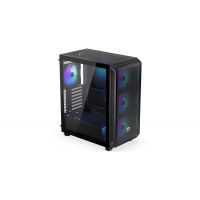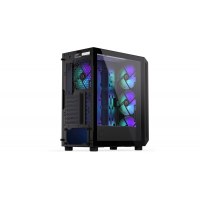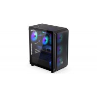 ENDORFY Arx 500 ARGB er et elegant ATX PC kabinet i sort med sidepanel i hærdet glas, der viser dit setup frem med indbygget ARGB-belysning. Fronten er udstyret med tre 140 mm blæsere, og bagtil sidder en 140 mm blæser – klar til effektiv luftgennemstrømning til gaming og krævende opgaver.
