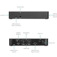 Dockingstationen tilbyder fleksibel tilslutning med både DisplayPort og HDMI, flere USB 3.2 Gen 1 Type‑A porte, en USB‑C 3.2 Gen 2 port (10 Gbps) samt 3,5 mm lyd til hovedtelefoner/mikrofon. Den fungerer med Windows, macOS, Chrome OS, Linux, Android og Ubuntu – ideel til kontor, hjemmearbejde og studie. Et aftageligt USB‑C til USB‑A kabel (1 m) medfølger, og der er slot til sikkerhedslås for ekstra tryghed.