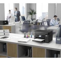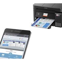Tilslut via USB, LAN eller Wi‑Fi og print fra mobiler, tablets og bærbare med Wi‑Fi Direct. Epson Smart Panel-appen gør det nemt at printe, kopiere og scanne direkte fra din enhed samt opsætte og overvåge printeren. Den indbyggede ADF til 30 ark og fax (Super G3, 33,6 Kbps) forenkler dokumenthåndteringen.