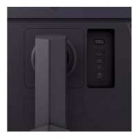 Tilslut via HDMI eller DisplayPort, og brug hovedtelefonudgangen til lyd. Strømforsyningen er ekstern. Skærmen kan desuden monteres på væg eller arm med VESA 100 × 100 mm.