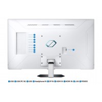 - Fleksibel tilslutning: 2× HDMI 2.1, DisplayPort 1.4, Wi‑Fi og Bluetooth