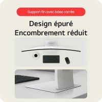 Det hvide, slanke design har tre-sidede ultratynde rammer og et ergonomisk stativ med højde-, hælde- og rotationsjustering. Praktiske funktioner som læsetilstand, sortstabilisator, præcisionsgitter, superopløsning og energibesparelse hjælper dig gennem dagen. Skærmen kan også monteres på væg eller arm via VESA.