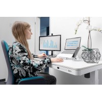 Skab en mere fleksibel arbejdsplads med dette elektriske hæve-/sænkebord fra DIGITUS. Det rektangulære bord i hvidt design passer ind i både hjemmekontor og åbne kontorer og gør det nemt at skifte mellem siddende og stående arbejde. Den indbyggede USB-oplader holder dine enheder kørende, mens den praktiske skuffe hjælper dig med at holde bordpladen ryddelig.