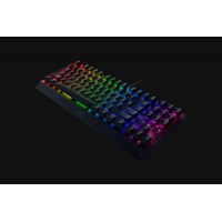 Razer BlackWidow V3 Tenkeyless er et kompakt og præcist gamingtastatur uden numerisk tastatur, der giver dig mere plads til musen og en ren opsætning. De lineære Razer Yellow mekaniske kontakter leverer hurtige, glatte tastetryk – ideelt til spil, hvor reaktionstid er afgørende. Den fulde RGB-baggrundsbelysning gør det let at skabe en personlig, farverig opsætning.