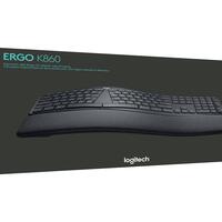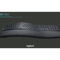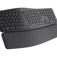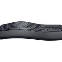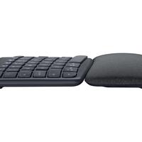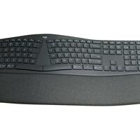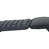 Logitech ERGO K860 er et trådløst, opdelt ergonomisk tastatur, der hjælper dig med at skrive mere naturligt og komfortabelt. Det buede, delte design fremmer en afslappet hånd-, håndleds- og underarmsposition, mens den skrånende form mindsker belastning, så du kan holde fokus hele dagen.