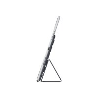 Det øverste lag er et specialvævet, holdbart materiale, der danner de fjedrende taster og giver præcis, stabil respons, selv om tastaturet kun er 4 mm tyndt. Overfladen afviser væske og snavs, og de 64 sammenhængende taster uden mellemrum minimerer indtrængning. Folio-delen har polyuretan på ydersiden og blødt mikrofiber indvendigt, som beskytter skærmen, når tastaturet er foldet.