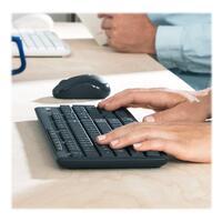Tastaturet i fuld størrelse har numerisk tastatur og 8 genveje til fx e-mail, lyd og afspil/pause, så navigation og dataindtastning går hurtigere. Den medfølgende mus er komfortabel med kurvet form og præcis peging på de fleste overflader – og naturligvis stille klik. Justerbar tastaturhøjde og spildsikkert design øger holdbarheden og brugervenligheden i det daglige.