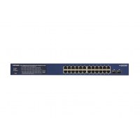 NETGEAR GS724TP er en managed gigabit switch til små og mellemstore netværk, der kræver høj ydeevne og enkel administration. Med 24 RJ‑45 gigabit-porte og et samlet PoE‑budget på 380 W kan du forsyne kompatible enheder som adgangspunkter, IP‑telefoner og kameraer direkte via netværkskablet. To SFP‑slots giver fleksible uplinks i fiber.