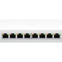 Få et stabilt, administreret netværk i hjemmet eller på det lille kontor med Ubiquiti UniFi Switch Lite 8-port. Den kompakte switch leverer gigabit-hastigheder på alle porte og har 4 PoE+‑porte til at forsyne enheder som adgangspunkter, IP‑kameraer eller VoIP‑telefoner – alt sammen med et samlet PoE‑budget på 52 W. Designet passer diskret på skrivebordet og kan også monteres på væggen for en ryddelig installation.