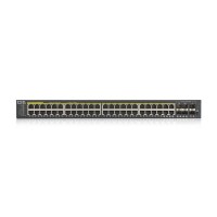 - 48 PoE-porte med samlet budget på 375 W til kameraer, AP’er og IP-telefoner