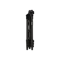Benene har fliplåse for hurtig justering, og mellemniveau-spreder øger stabiliteten. Midtersøjlen har udveksling for præcis højdejustering, og gummifødder står fast på glatte underlag. Stativet understøtter udstyr op til 2 kg og passer til både kamera og mobiltelefon via 1/4" skrue og medfølgende quick-release smartphone-holder. Der følger taske, Bluetooth-fjernudløser og rensesæt til smartphone med, så du er klar til optagelse overalt.