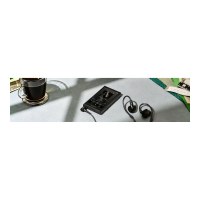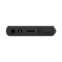 Afspil helt op til 36 timer (MP3/FLAC) og op til 28 timer med DSD. Den indbyggede litiumion‑batteripakke lades via USB‑C (USB 3.2 Gen 1). Udvid nemt pladsen til din samling med microSD, microSDHC eller microSDXC‑kort.