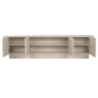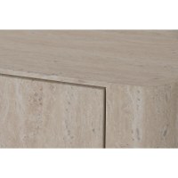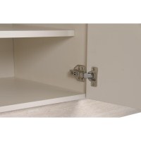 Møblet er fremstillet i træ og har en front med rene linjer, der skjuler rummelig opbevaring. Bagsiden har runde gennemføringer, som gør det nemt at føre kabler diskret væk, så stuen fremstår ryddelig og indbydende.