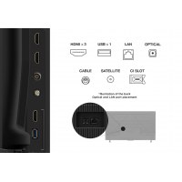 3× HDMI 2.1 (ARC/eARC, HDMI Quick Switch), 1× USB 3.2 Gen 1, optisk udgang, LAN, antenne (2× RF), CI+ 1.4