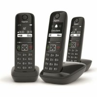 Gigaset AS690 Trio er en brugervenlig trådløs fastnettelefon i sort med tre håndsæt, så du kan håndtere opkald fra flere rum. Systemet er skabt til klar og praktisk kommunikation med HDSP højtydende lyd til naturlig stemmekvalitet og håndfri samtaler. En ultralæselig skærm viser opkalds-id med nummer og navn, og den indbyggede telefonbog rummer op til 100 kontakter - perfekt til familie, kolleger og faste samarbejdspartnere.