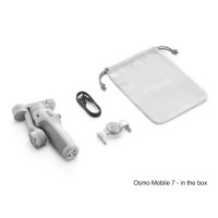 Osmo Mobile 7 understøtter smartphones med en bredde fra 6,7 til 8,4 cm og en maksimal vægt på 0,3 kg. Gimbalen byder på kontrollerbare bevægelser: panorering fra -99 til 210°, vip fra -20 til 40° og rulle fra -67 til 245°. Det indbyggede LiPo-batteri på 3.350 mAh giver op til 10 timers driftstid og oplades via USB-C. Bluetooth 5.3 sørger for trådløs forbindelse til din telefon.