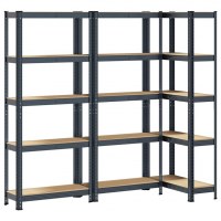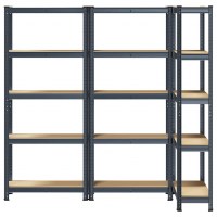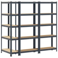 Opbevaringsreoler 3 stk. 5 hylder stål konstrueret træ antracit