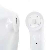 Mannequinen består at 5 dele: hoved, torso, ben, venstre arm og højre arm. Hovedet og armene kan rotere 360 °, hvilket giver dig mulighed for at arrangere mannequinen i mange forskellige positioner. Hele kroppen er fremstillet af polypropylen, som er let og holdbart. Glassoklen med aluminiumsstativ sikrer stabilitet og giver mulighed for, at modellen kan fremvise sko.