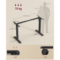 Skab dit eget hæve-sænkebord med dette elektriske stel i ink black. Længden kan justeres fra 80–150 cm og passer til bordplader på 100–160 cm i længden og 50–80 cm i bredden. Højden kan indstilles mellem 72–118 cm, så du nemt skifter mellem siddende og stående arbejde og får et mere behageligt setup på hjemmekontoret eller kontoret.