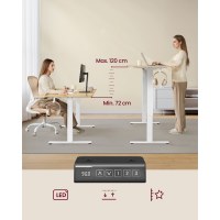 Gør arbejdspladsen mere behagelig med dette elektriske hæve-sænke stel i mat hvid. Stellet kan forlænges i længden fra 90 til 140 cm og passer til bordplader på 100–170 cm i længden og 50–80 cm i bredden – ideelt til kontor, værksted eller stue. Højden justeres elektrisk fra 72 til 118 cm, og med 3 højdememory skifter du hurtigt mellem stående og siddende arbejde.