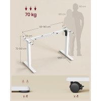 Det robuste stel i stål og motoren sørger for jævn højdejustering med en belastning op til 70 kg. Under kørsel er lydniveauet under 48 dB, så du kan arbejde uforstyrret. Gennemtænkte detaljer som 2 kroge til f.eks. hovedtelefoner, justerbare skruefødder for gulvbeskyttelse, hjul for let flytning samt overophedningsbeskyttelse giver ekstra komfort og sikkerhed.