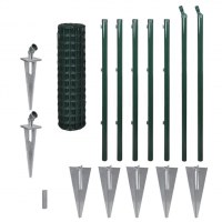 Dette eurohegn med spyd er let at sætte op. Det leveres med pæle og installationsmateriale som hætter til pælene, trådholdere og skruer. Med de inkluderede spyd og plader kan du let stikke stolperne ned i græsset og fastgøre dem.