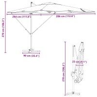 - Justerbart design: Den 286 x 285 x 265 cm store Cantilever Roma parasol har et fleksibelt vippe-mekanisme, så du kan justere den perfekt, som solen bevæger sig. Denne smarte funktion gør din udendørs oplevelse meget mere behagelig, mens du chiller med familie og venner.