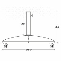 Aktive parasolfod med hjul - sort 25 kg, Ø 50 cm