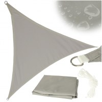Skab behagelig skygge på terrasse, altan eller i haven med dette trekantede solsejl i størrelsen 3×3×3 m. Det er fremstillet af 120 g/m² PU Oxford-stof med UV-filter, der beskytter mod solen og giver komfort på varme dage. Det grå sejl har vandbestandighed på 400 mm H₂O, så det også skærmer mod let regn og vind, mens forstærkede kanter og rustfri D-ring i hvert hjørne sikrer stabil montering.