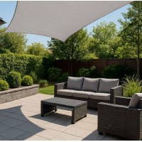 Materialet er designet til udendørs brug med vandtæthed på 400 mm H₂O og UV‑filter. Det giver dig en komfortabel skygge ved grill, loungemøbler, sandkasse eller spa, samtidig med at sejlets form skaber et stilfuldt look i dit uderum.