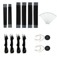 Festteltet er fremstillet af 100 % polyesterstof med PA-belægning, som gør det UV-resistent. Stellet er konstrueret af robust glasfiber og er derfor modstandsdygtigt over for rust og er desuden let. De fire medfølgende "myggenet"-sidevægge giver ideel beskyttelse mod alle former for insekter. Sidevæggene er udstyret med en lynlås, så kan de fastgøres inden for få sekunder. Derudover kan LED -belysningen med 96 LED'er let tændes og slukkes manuelt, og det medfølgende solmodul oplader det integrerede batteri i løbet af dagen.