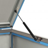 Dette skraldespandsskur er lavet af galvaniserede stålpaneler og et stel i rustfrit stål, hvilket gør det yderst robust og rustbeskyttet. Det hullede design tillader luftcirkulation og forebygger dårlige lugte i skraldespandsskjuleren. Låsesystemet garanterer sikker opbevaring af skraldet. Ydermere gør det praktiske låg og fjedre det nemt at smide skrald ud i skraldespanden og tømme den igen.