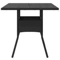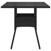 Havebord med glastop 80x80x75 cm polyrattan sort