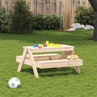 Dette picnicbord i træ giver børn et komfortabelt sted udenfor, hvis de kan spise, spille og lege med deres venner.