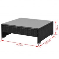 Havemøbelsættet er lavet af vejrbestandigt polyrattan, hvilket gør det let at rengøre og slidstærkt nok til daglig udendørsbrug. Sofasegmenterne og bordene har et robust og holdbart pulverlakeret stålstel. De løse sædehynder og puder er yderst behagelige, og deres polyesterbetræk er let at rengøre. Dette lette, modulære sofasæt i rattan kan nemt flyttes rundt og placeres fleksibelt for at tilpasse enhver indretning. Takket være den store baldakin, som kan udvides for at blokere mod direkte sollys, kan du nyde at være udendørs uden at blive blændet. Sofabordet kan udstyres med en transparent glasbordplade og en 6 cm tyk sædehynde, så du kan omdanne den til en ottoman, eller du kan indarbejde det i sammensætningen som en stor solseng.