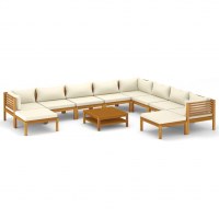 Loungesæt til haven 11 dele med hynder massivt akacietræ creme
