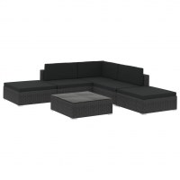 Loungesæt til haven 6 dele med hynder polyrattan sort