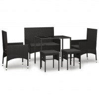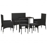 Loungesæt til haven 6 dele med hynder polyrattan sort