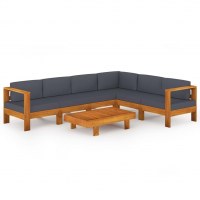 Loungesæt til haven 7 dele med mørkegrå hynder akacietræ