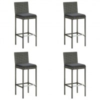 Barstole til haven med hynder 4 stk. polyrattan grå