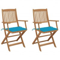 Disse foldbare stole i massivt akacietræ med hynder giver dig et perfekt sted, hvor du kan slappe af og nyde solen i haven eller på terrassen.