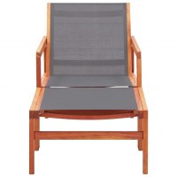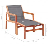 Havestol med fodskammel massivt eukalyptustræ og textilene grå