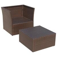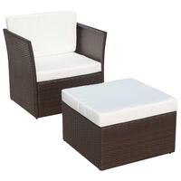 Havestol med fodskammel polyrattan brun