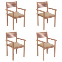 Havestolene kan stables for at spare plads, når de ikke er i brug. Den medfølgende hynde er både praktisk og dekorativ.