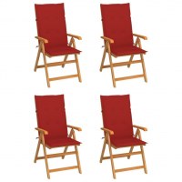 Havestole 4 stk. med røde hynder massivt teaktræ